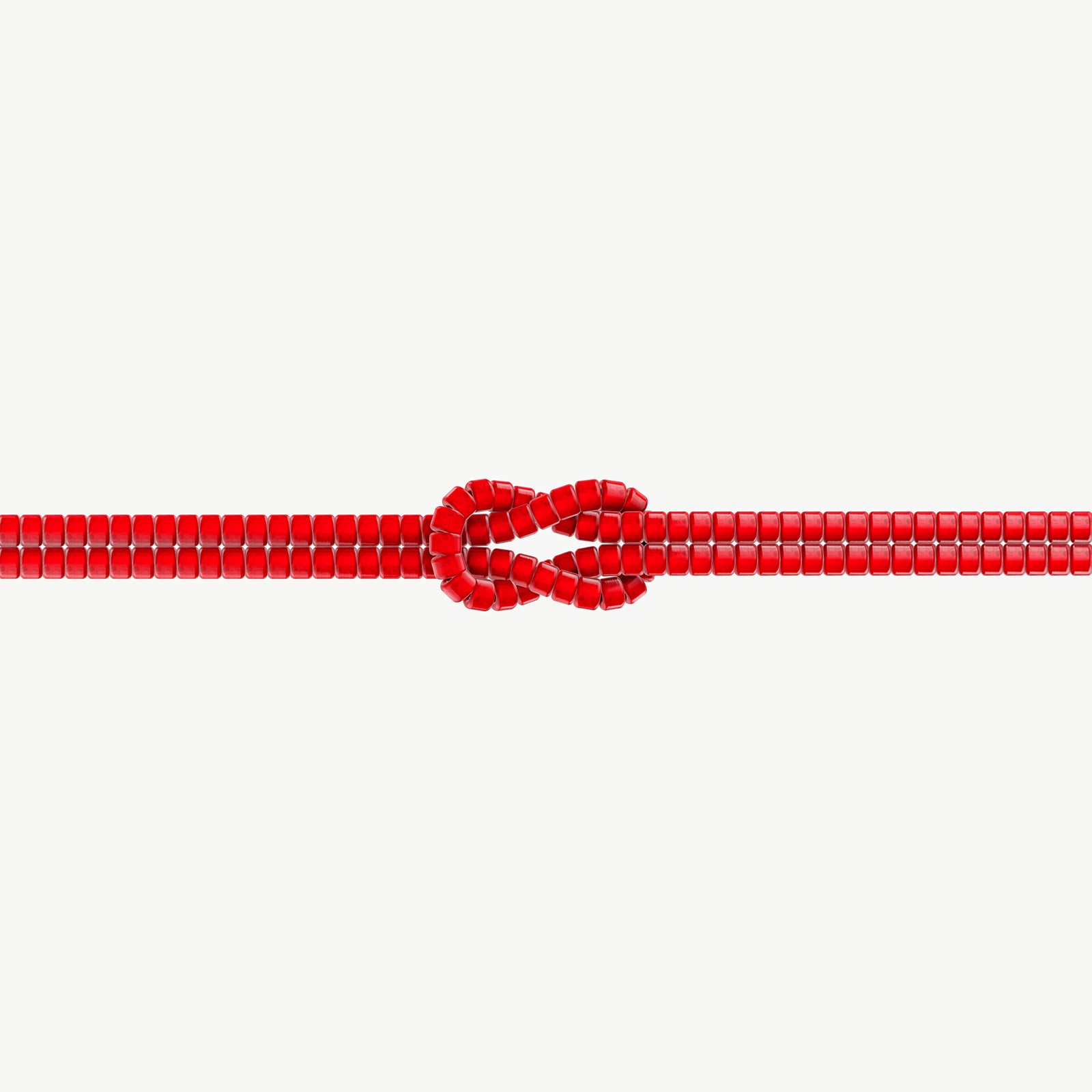 Questo bracciale nodo rosso con dettagli dorati, in edizione limitata e numerata, è realizzato a mano in Italia con perle in vetro di alta qualità. In taglia unica da 15 cm estendibili fino a 19 cm, con chiusura a gancio.